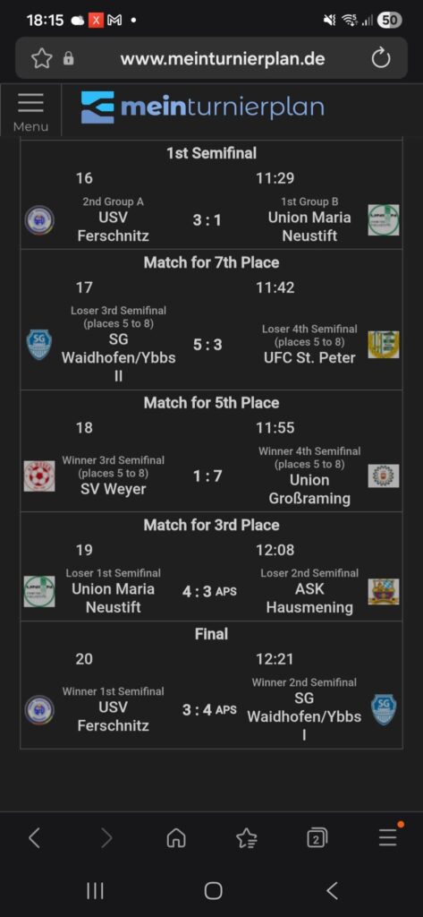 Beim letzten Turnier konnten wir das Finale noch gegen Waidhofen gewinnen – diesmal hatte Waidhofen nach dem Elfmeterdrama das bessere Ende für sich.